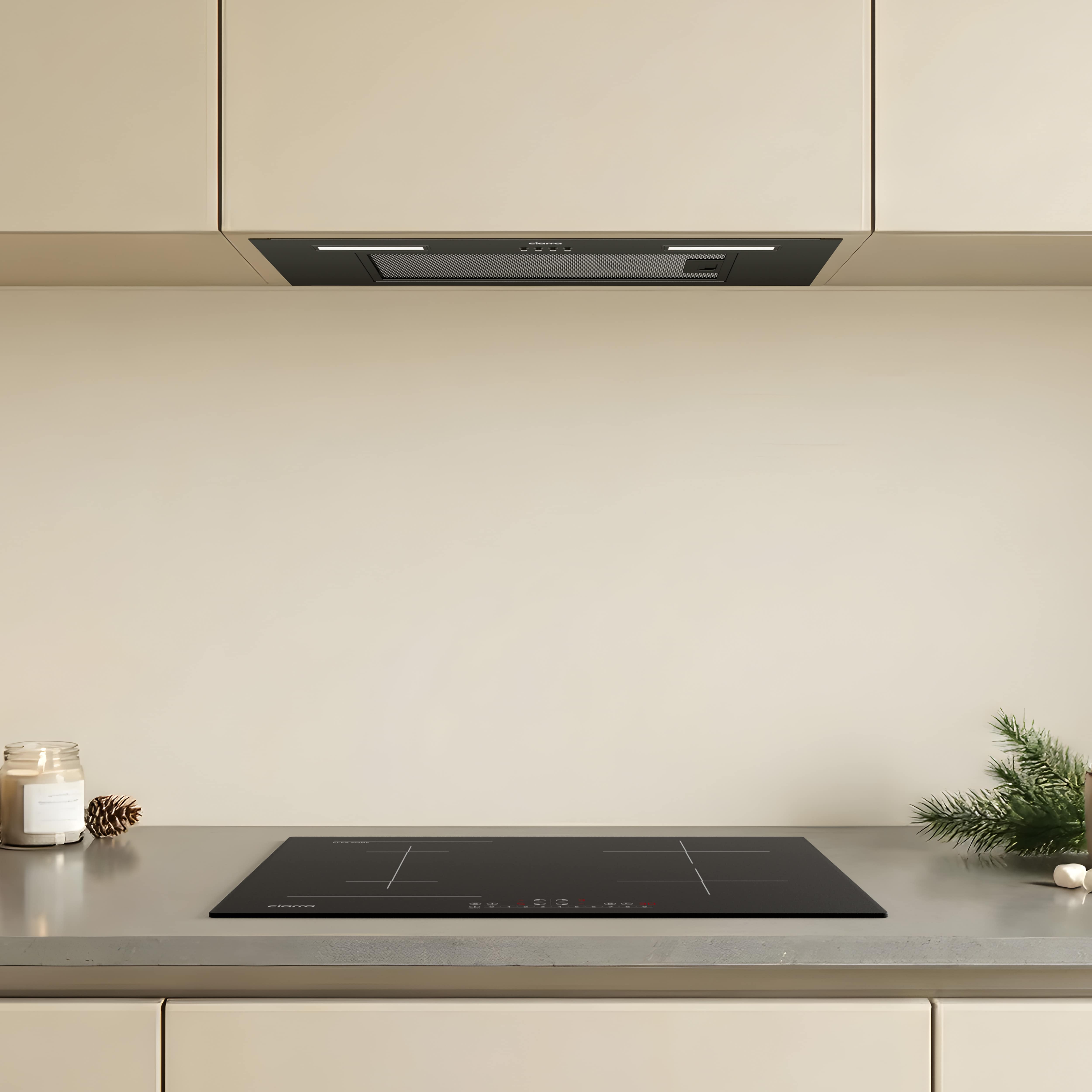 Con una potencia máxima de succión de 550 m³/h y eficiencia energética A+, ofrece un rendimiento confiable manteniendo un bajo consumo de energía. Su instalación sencilla y el modo de recirculación, con filtro de carbón activado, la hacen fácil de usar y adecuada para inquilinos o aquellos que buscan mantenimiento sin complicaciones. El acabado negro pintado y la iluminación LED integrada proporcionan una estética minimalista que se adapta a interiores contemporáneos.