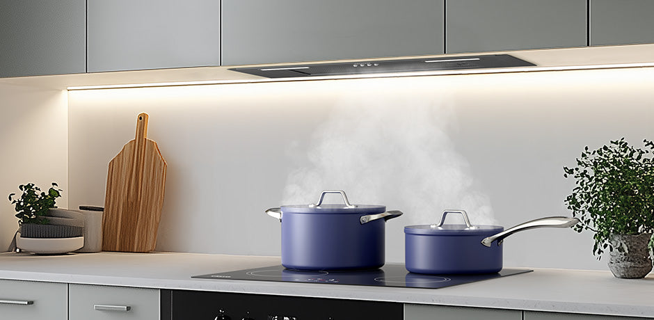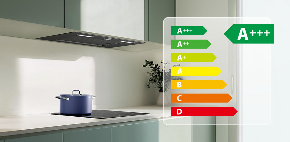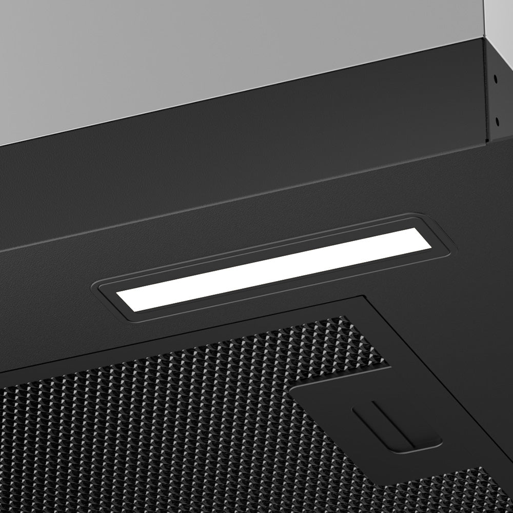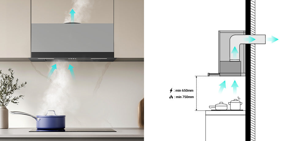 - Extracción profesional y silenciosa: 650 m³/h ajustable (3 velocidades) • 63 dB máx.