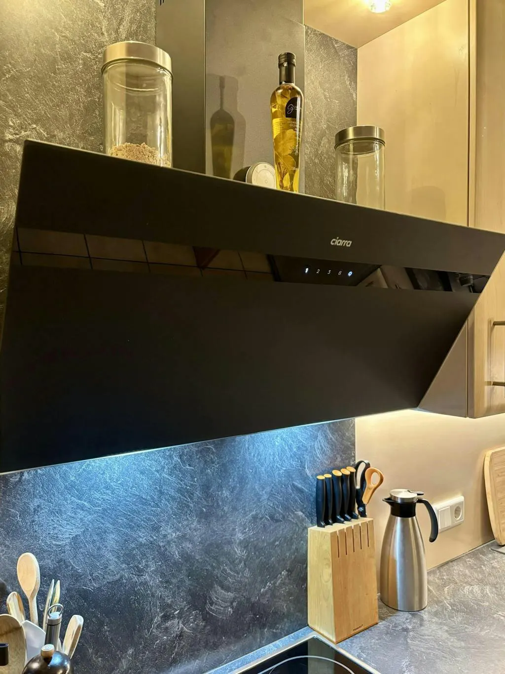 - Iluminación LED, incl. filtro de carbón, filtro de grasa lavable