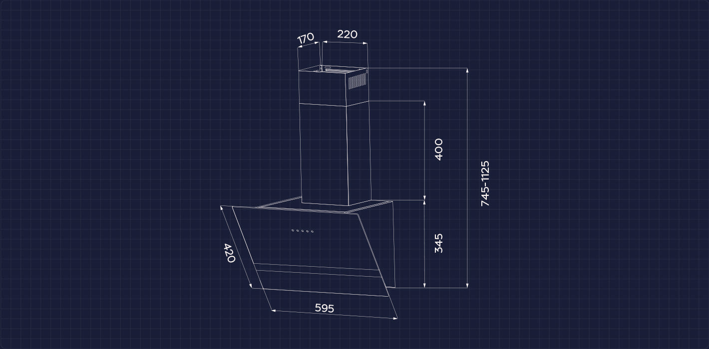 - Campana extractora de vidrio templado 60cm, 650m³/h