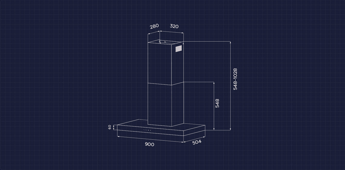 - Campana de cocina lineal de 90cm, 650 m³/h