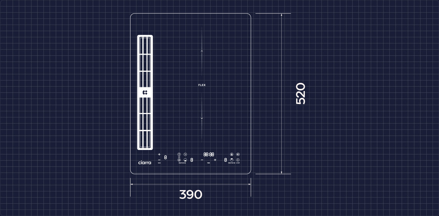 Ciarra ONE Placa de Inducción con Extractor Domino 390 mm con Sistema Plasma⁺ Incorporado CBBEH392BF-OW