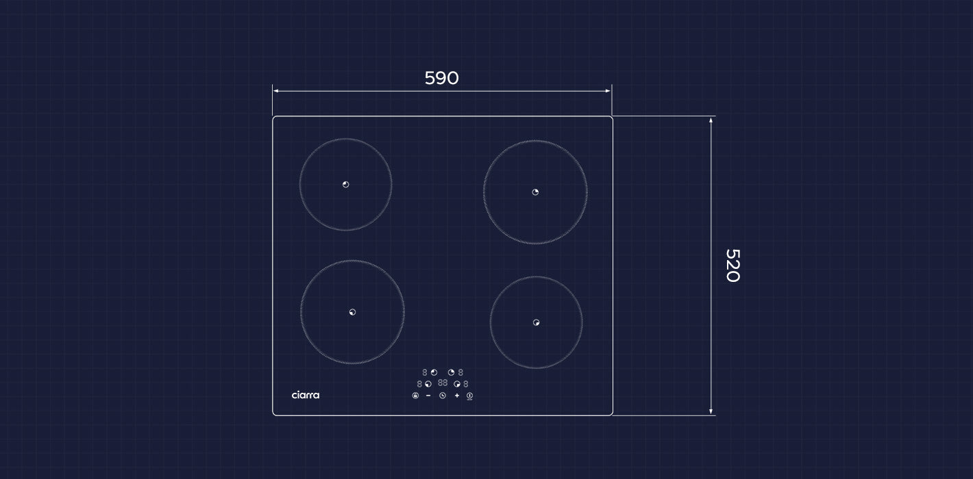 CIARRA Inducción Invisible Placa de inducción empotrada con 4 zonas y 9 niveles de potencia CABBIH4-F