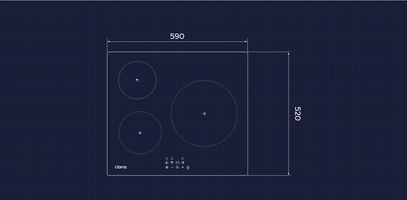CIARRA Invisible Vitroceramica Induccion Placa inducción empotrada con 3 fuegos y 9 niveles de potencia CABBIH3-F