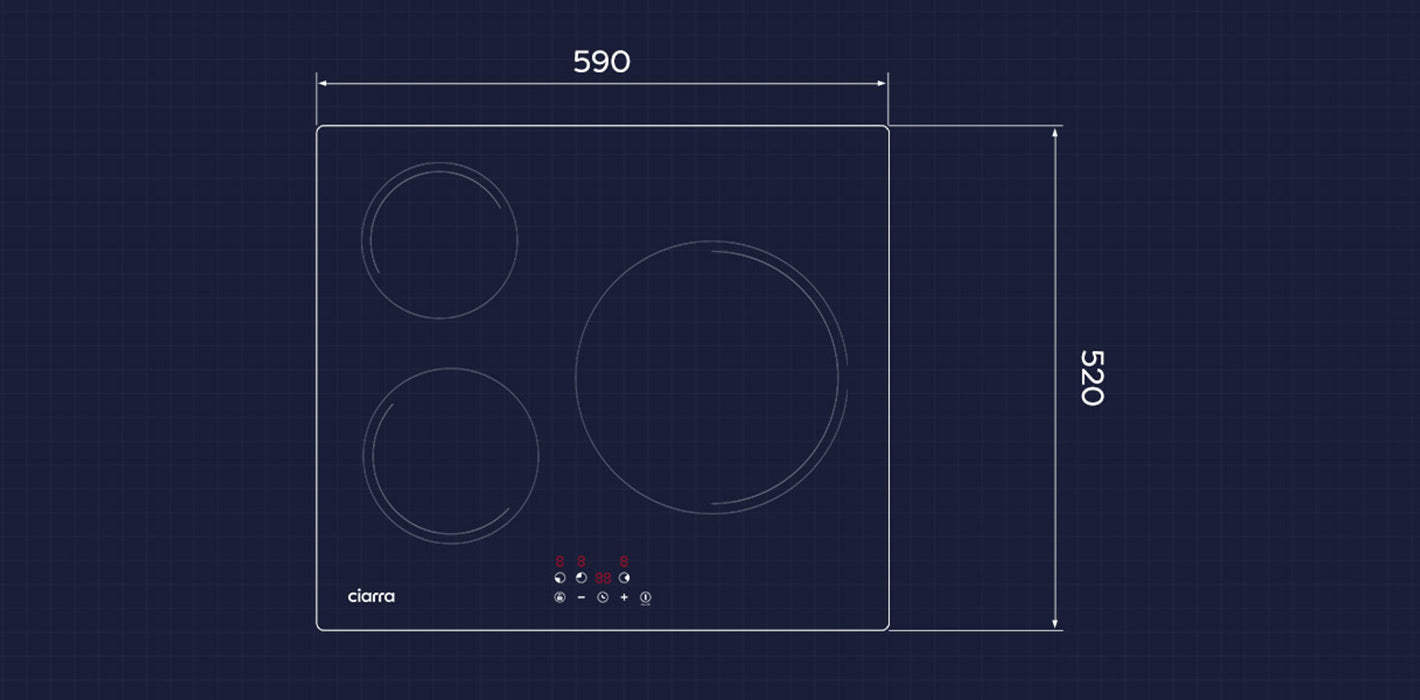 CIARRA Invisible Vitroceramica Induccion Placa inducción empotrada con 3 fuegos y 9 niveles de potencia CABBIH3-E