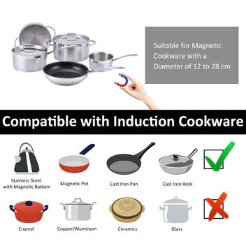 Las fogones de inducción solo funcionan correctamente si detectan una cantidad suficiente de masa magnética en la parte inferior de la sartén.Hay muchos "grado de inducción"Potes por ahí.Sin embargo, a menudo, solo una placa de metal delgada está pegada al fondo de la olla.Por lo tanto, puede suceder que las ollas no se reconocen o la encimera no active la potencia completa porque no se detecta una masa magnética suficiente.
