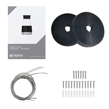 CIARRA Campana extractora de isla inteligente Viene Con Los Siguientes Artículos En La Caja:
