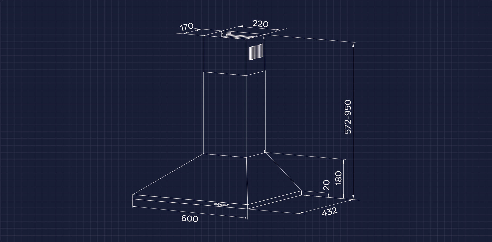 - Campana extractora de pared 60 cm, 370 m³ / h