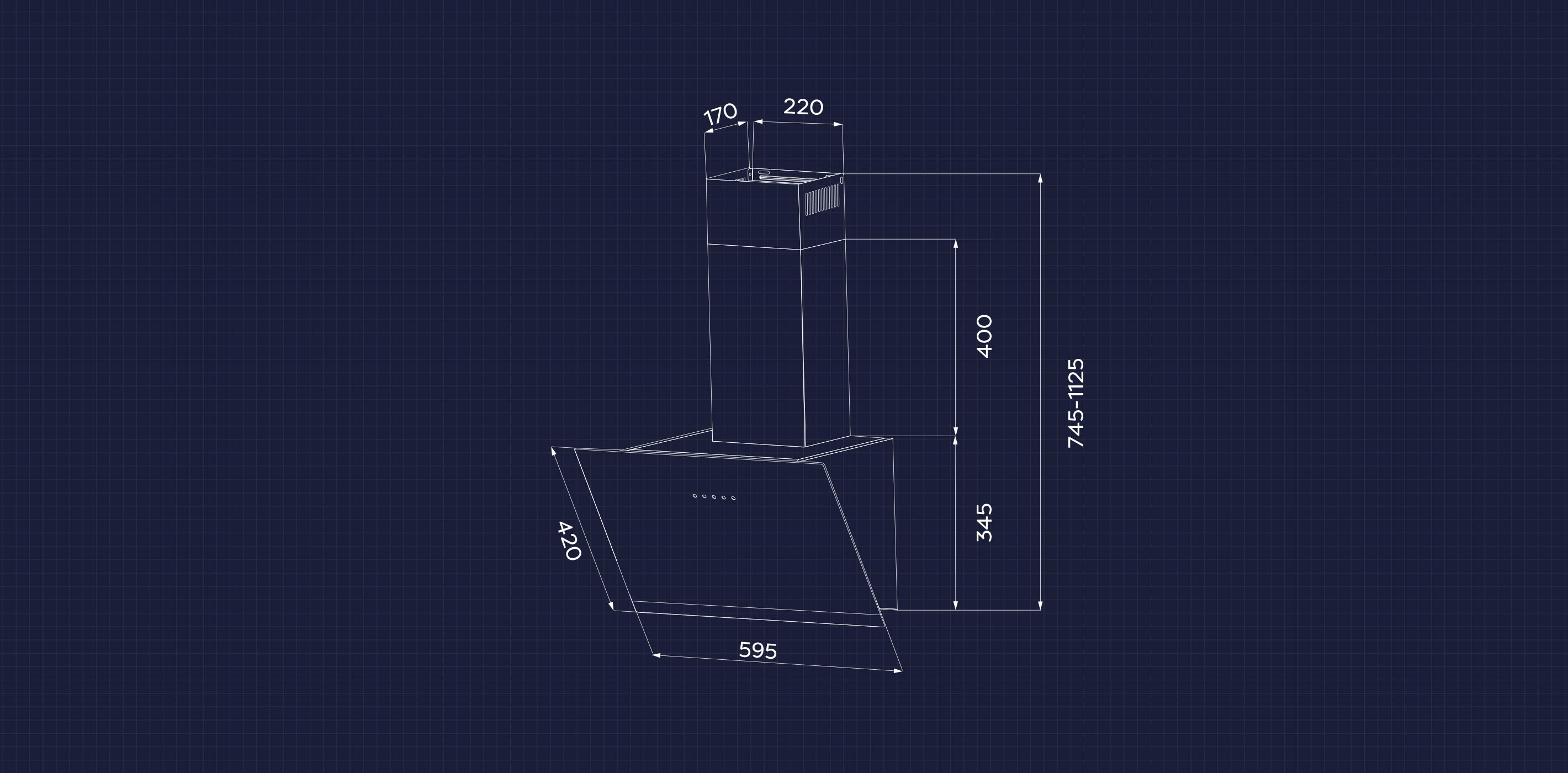 - Campana extractora de vidrio templado 60cm, 650m³/h