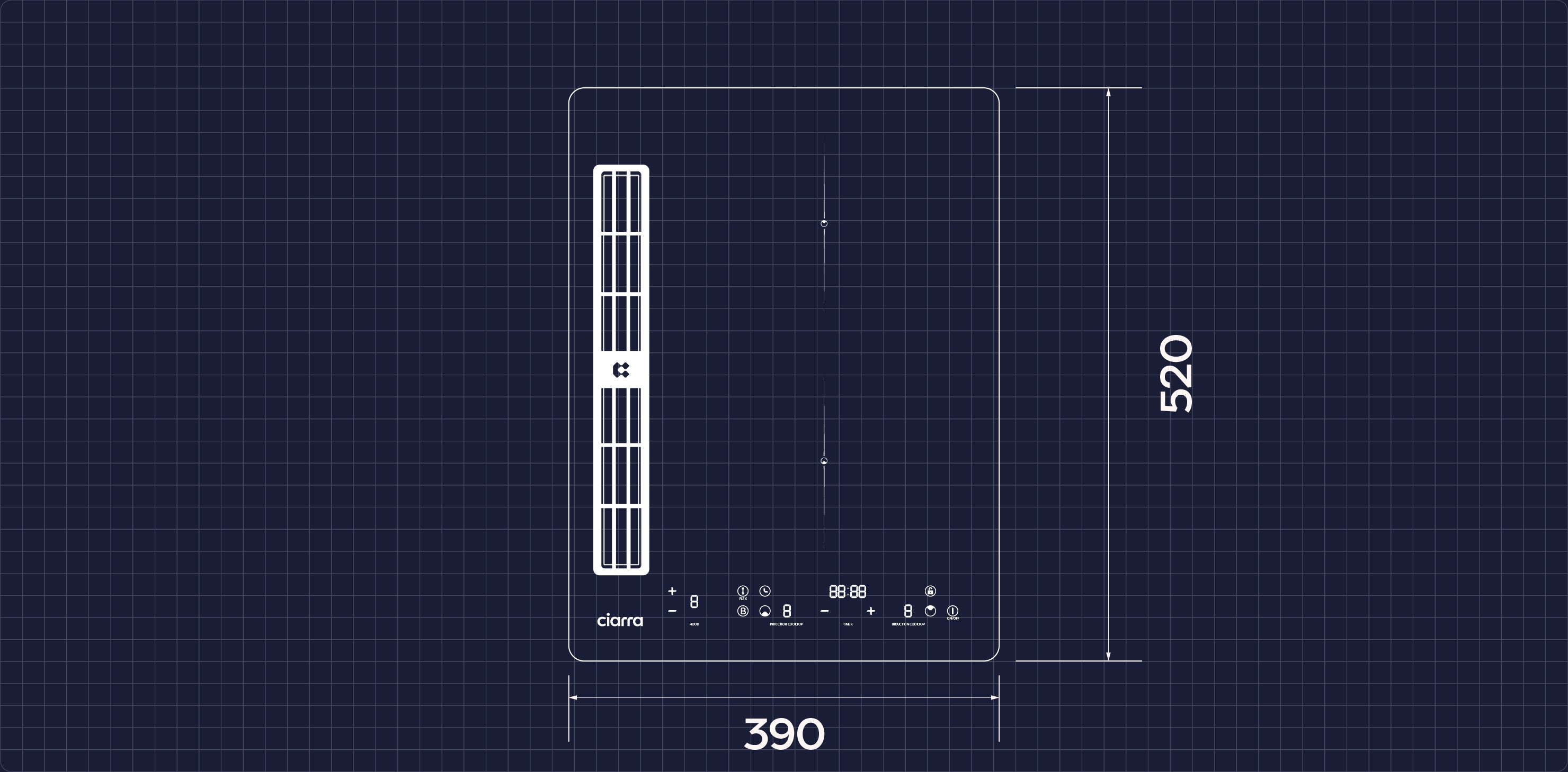 Ciarra ONE Placa de Inducción con Extractor Domino 390 mm con Sistema Plasma⁺ Incorporado CBBEH392B-OW