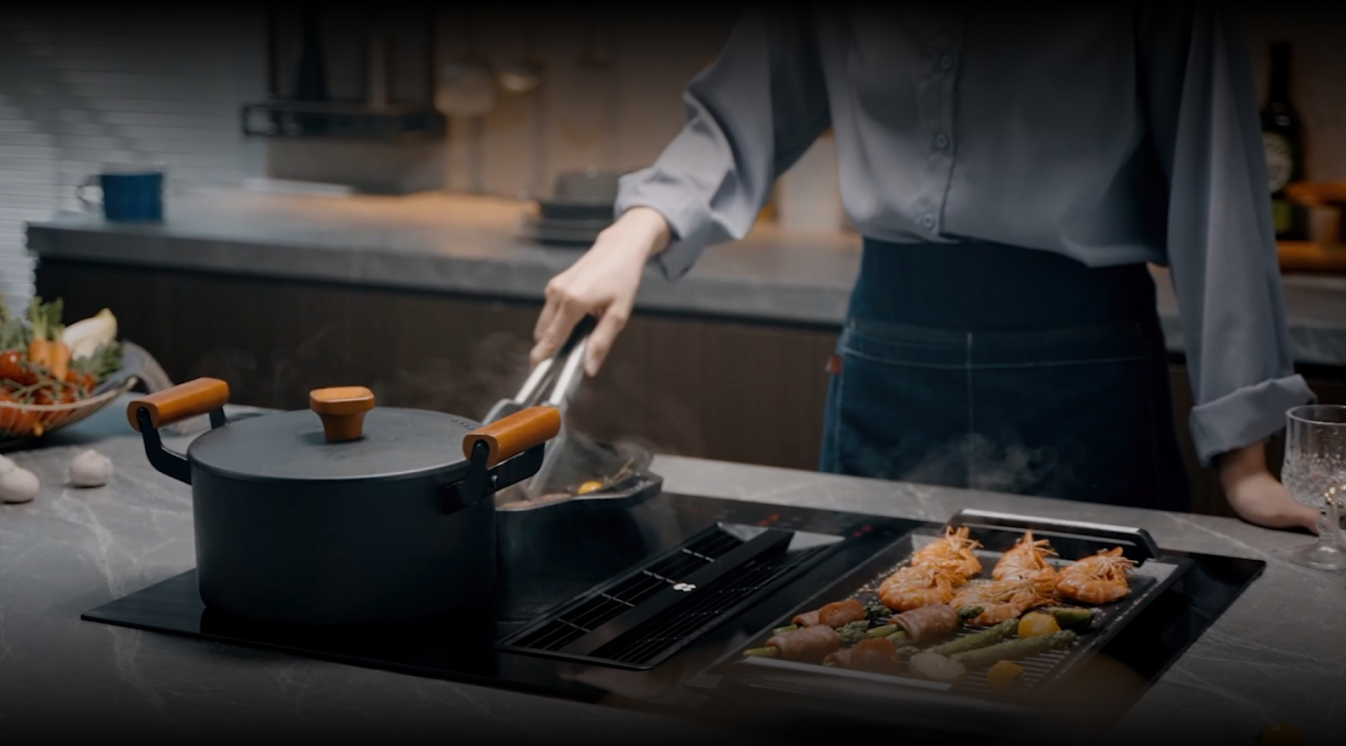 - Dos almas en UNA: Placa de inducción empotrable combinada con extractor