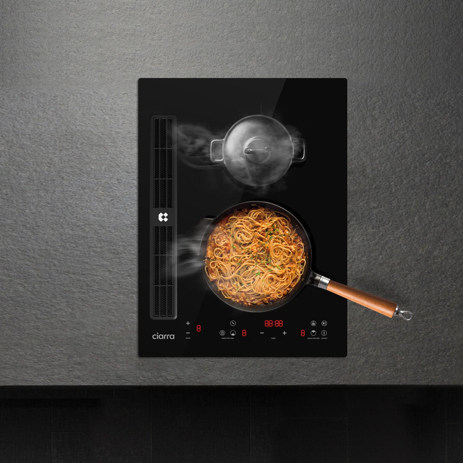 Ciarra ONE Placa de Inducción con Extractor Domino 390 mm con Sistema Plasma⁺ Incorporado CBBEH392B-OW